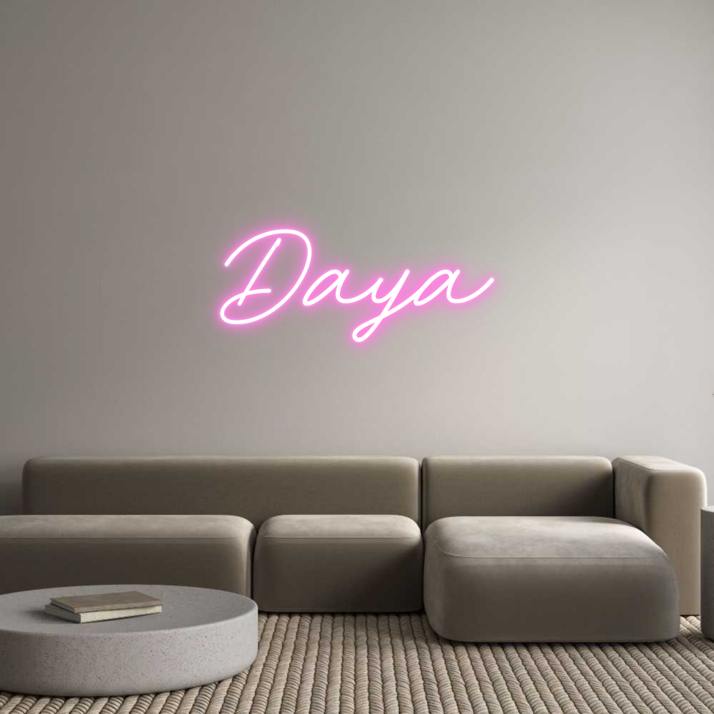 Text: Daya Text Align: LeftFont: RocketColor: Baby PinkSize: 100cm wide / 100cm X 41.11cm / 39.37in X 16.19inBackboard: Cut to ShapeBackboard Color: Clear Acrylic BackboardJacket: Coloured JacketMounting: Wall mounting screwsAdd a Heart or Star (Optional): HeartNeon Tube Thickness: C...