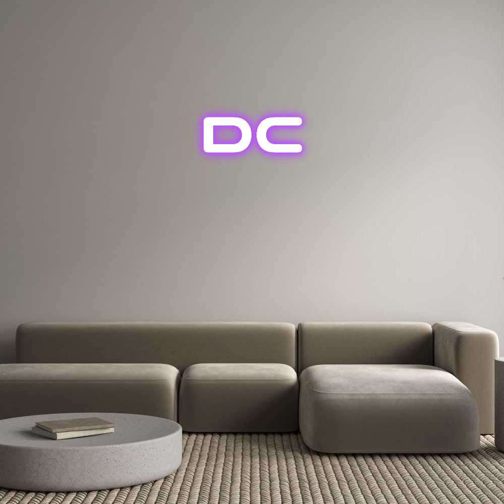 Text: DC Text Align: left Font: SpaceColour: PurpleSize: 40cm wide / 40cm X 13.57cm / 15.75in X 5.34inBackboard: Cut to ShapeBackboard Colour: Clear Acrylic BackboardJacket: Coloured JacketMounting: Wall mounting screwsAdd a Heart or Star (Optional): None (Default)Neon Tube Thi...