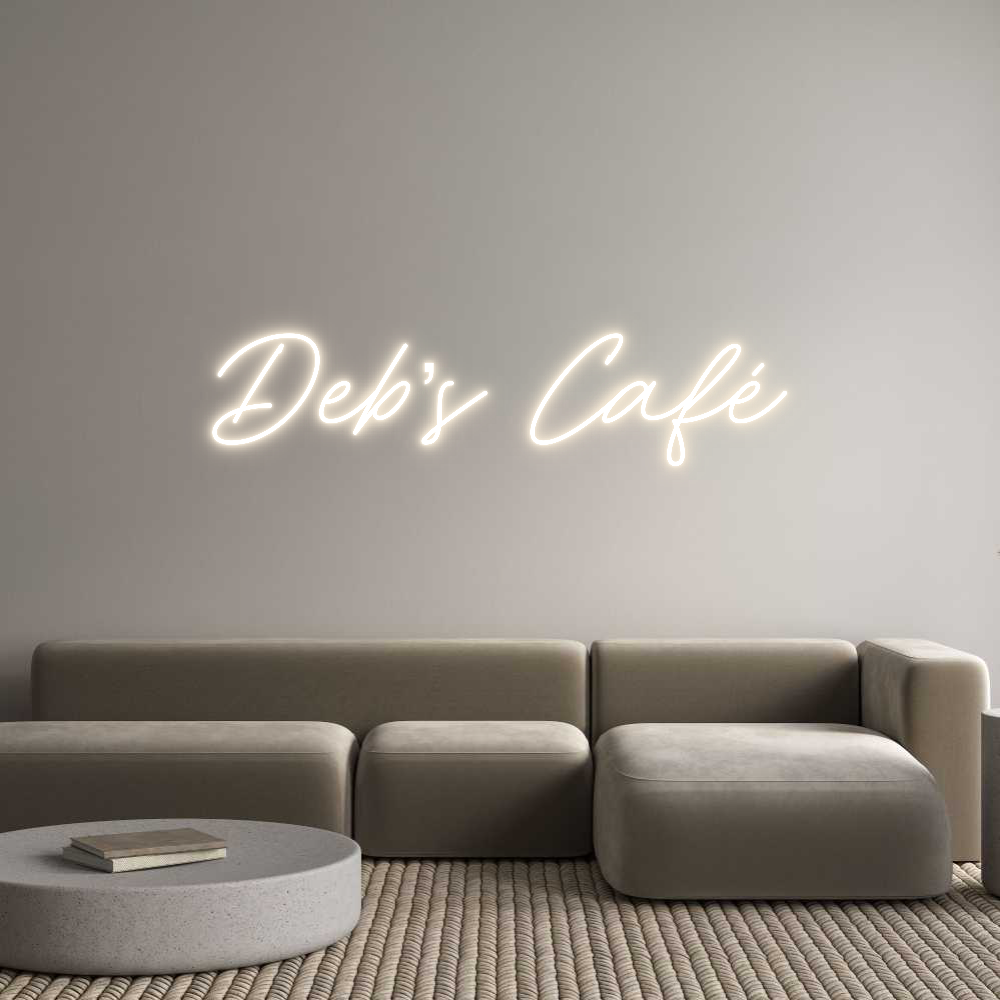 Text: Deb’s Café Text Align: LeftFont: RocketColor: Warm WhiteSize: 60cm wide / 60cm X 14.55cm / 23.62in X 5.73inBackboard: Cut to ShapeBackboard Color: Clear Acrylic BackboardJacket: Coloured JacketMounting: Wall mounting screwsAdd a Heart or Star (Optional): None (Default)Neon Tube...