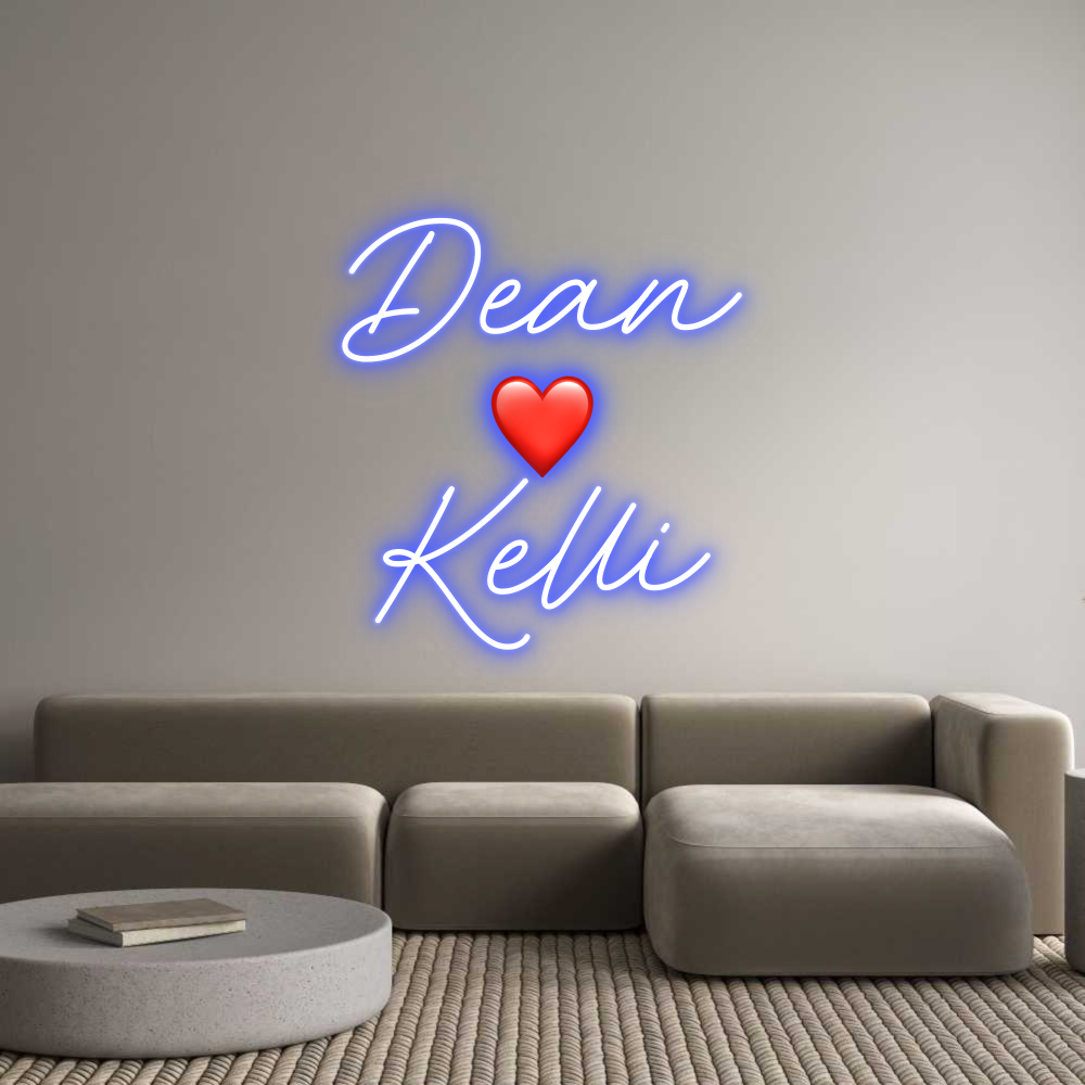 Text: Dean ❤️ Kelli Text Align: centerFont: RocketColour: BlueSize: 60cm wide / 60cm X 87.81cm / 23.62in X 34.57inBackboard: Cut to Letter (free upgrade)Jacket: Coloured JacketMounting: Fast mount kitAdd a Heart or Star (Optional): None (Default)Neon Tube Thickness: Bold Tube (8mm)...