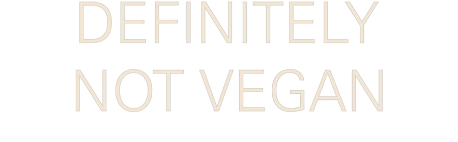 Text: DEFINITELY NOT VEGAN Text Align: centerFont: ZurichColour: Warm WhiteSize: 60cm wide / 60cm X 21.52cm / 23.62in X 8.47inBackboard: Cut to Letter (free upgrade)Jacket: Coloured JacketMounting: Wall mounting screwsAdd a Heart or Star (Optional): None (Default)Neon Tube Thickness...