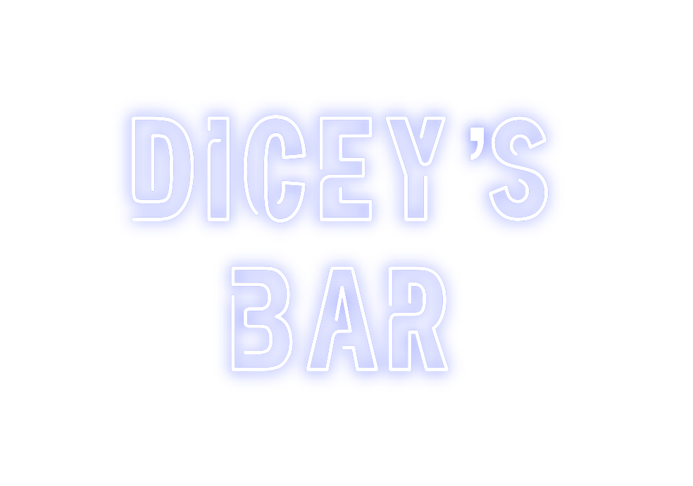 Text: Dicey’s Bar Text Align: center Font: NeonColour: BlueSize: 40cm wide / 40cm X 25.62cm / 15.75in X 10.09inBackboard: Cut to ShapeBackboard Colour: Clear Acrylic BackboardJacket: Coloured JacketMounting: Wall mounting screwsAdd a Heart or Star (Optional): None (Default)Neon...
