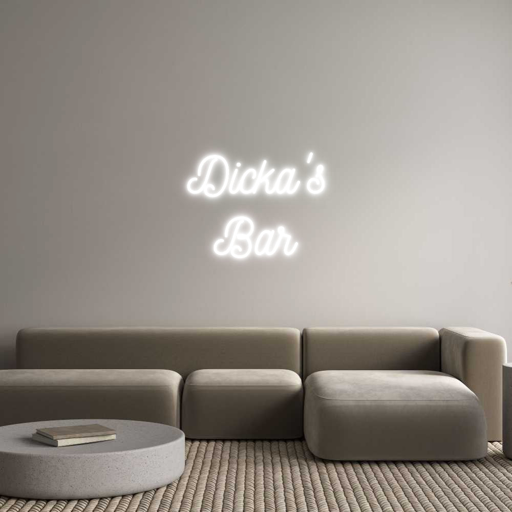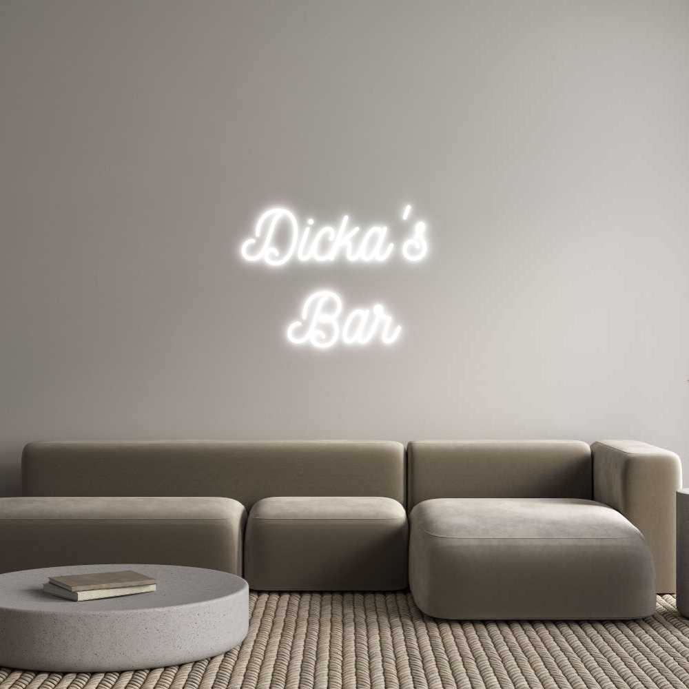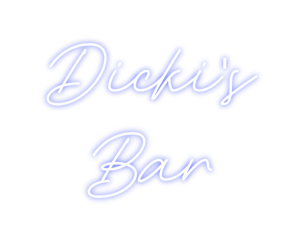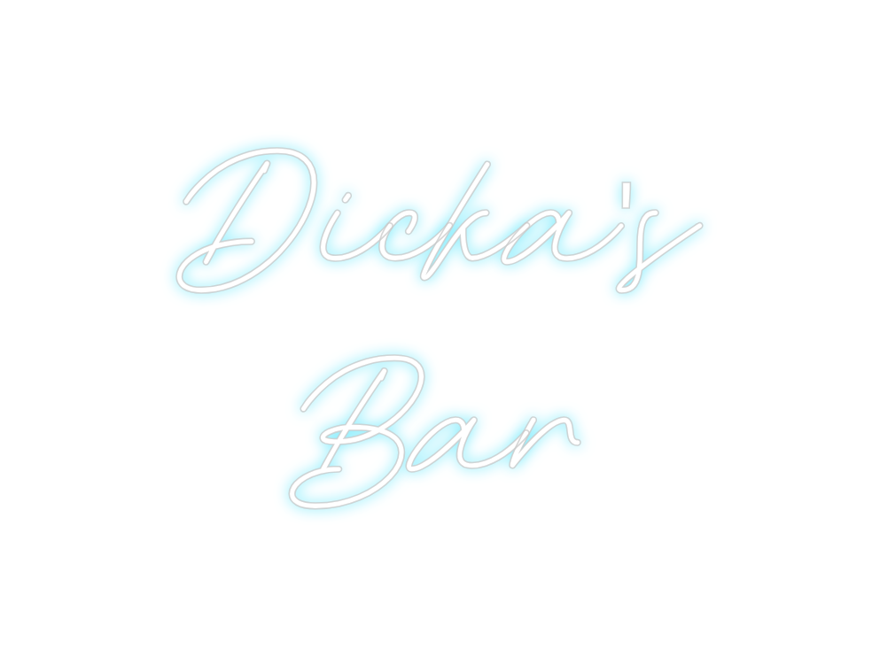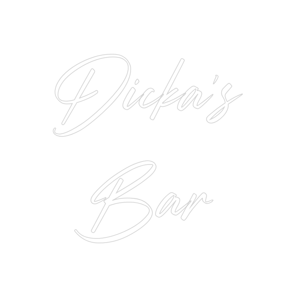 Text: Dicka's Bar Text Align: centerFont: NickainleyColour: WhiteSize: 140cm wide / 140cm X 109.21cm / 55.12in X 43inBackboard: Cut to ShapeBackboard Colour: BlackJacket: White JacketMounting: HangingAdd a Heart or Star (Optional): None (Default)Neon Tube Thickness: Bold Tube (8mm) ...