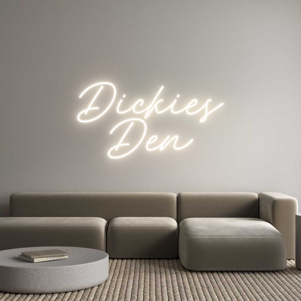 Text: Dickies Den Text Align: centerFont: RocketColour: Warm WhiteSize: 60cm wide / 60cm X 40.51cm / 23.62in X 15.95inBackboard: Whole Board (free upgrade)Backboard Colour: Clear Acrylic BackboardJacket: Coloured JacketMounting: Wall mounting screwsAdd a Heart or Star (Optional): No...