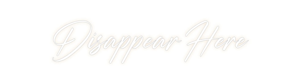 Text: Disappear Here Text Align: left Font: StrudeColour: Warm WhiteSize: 100cm wide / 100cm X 21.93cm / 39.37in X 8.63inBackboard: Cut to ShapeBackboard Colour: Clear Acrylic BackboardJacket: Coloured JacketMounting: Wall mounting screwsAdd a Heart or Star (Optional): None (De...