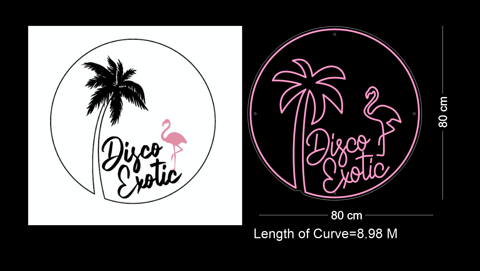 Text: DISCO Text Align: CenterFont: ZurichColor: PinkSize: 100cm wide / 100cm X 26.49cm / 39.37in X 10.43inMaterial: Outdoor (+30%) Backboard: Whole Board (free upgrade)Backboard Color: Clear Acrylic BackboardJacket: White JacketMounting: HangingAdd a Heart or Star (Optional): None (Default...