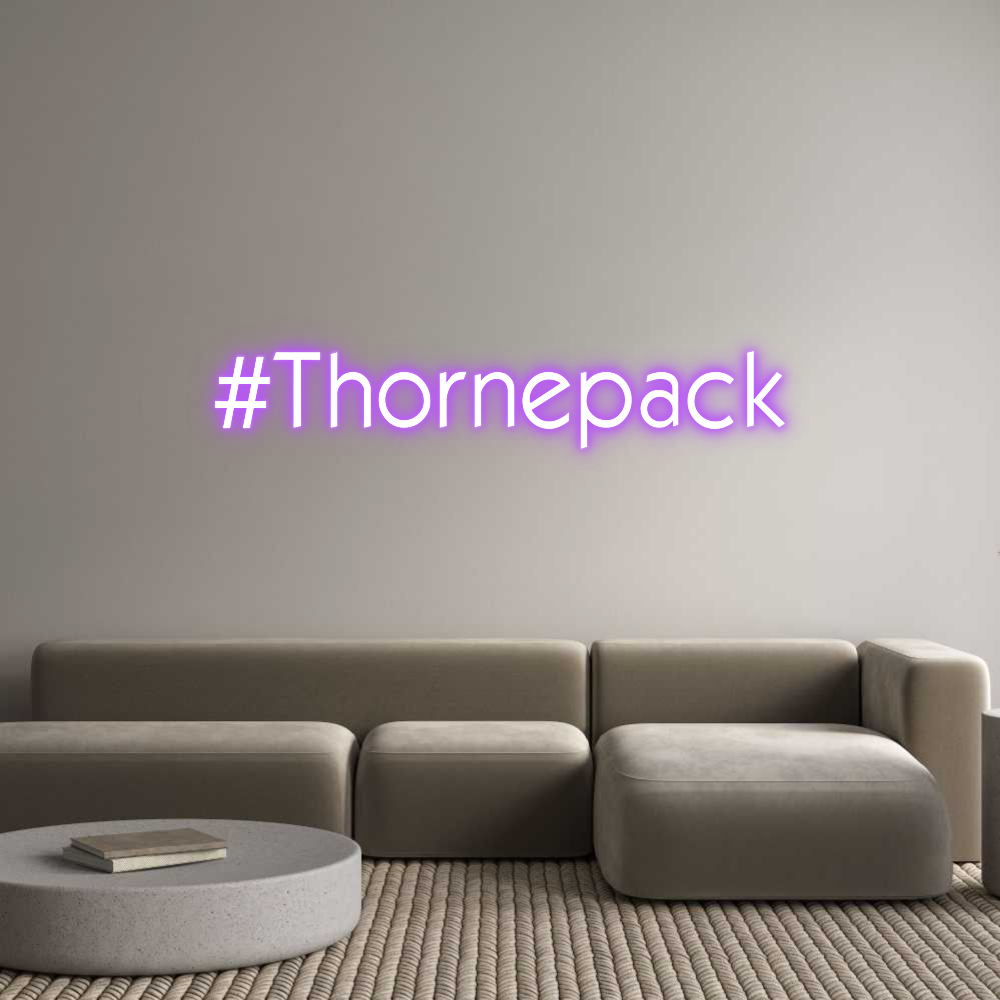 Text: #Thornepack Text Align: centerFont: KabelColour: PurpleSize: 80cm wide / 80cm X 14.72cm / 31.5in X 5.8inBackboard: Cut to ShapeBackboard Colour: Clear Acrylic BackboardJacket: White JacketMounting: HangingAdd a Heart or Star (Optional): None (Default)Neon Tube Thickness: Bold T...