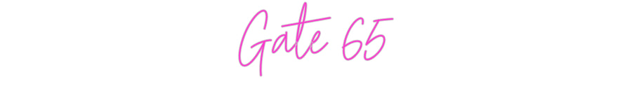 Text: Gate 65 Text Align: leftFont: HestericaColour: PinkSize: 60cm wide / 60cm X 30.08cm / 23.62in X 11.84inBackboard: Cut to Letter (free upgrade)Jacket: Coloured JacketMounting: HangingAdd a Heart or Star (Optional): None (Default)Neon Tube Thickness: Classic Tube (6mm)Remote Dimm...