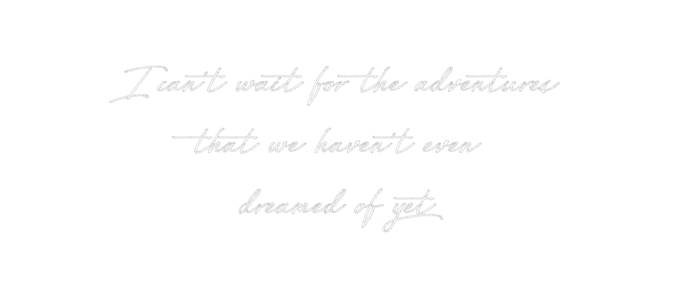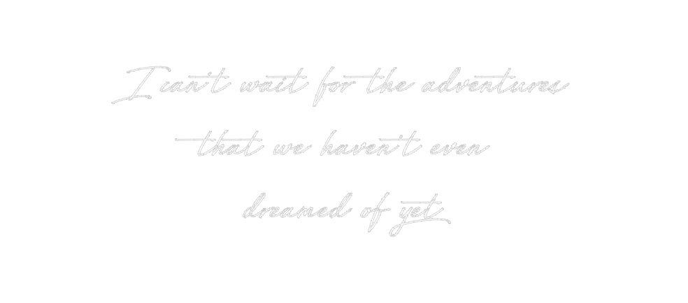 Text: I can't wait for the adventures that we haven't even dreamed of yet Text Align: center Font: BayshoreColour: WhiteSize: 160cm wide / 160cm X 60.96cm / 62.99in X 24inBackboard: Cut to ShapeBackboard Colour: Clear Acrylic BackboardJacket: Coloured JacketMounting: Wall m...