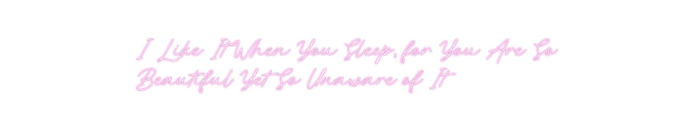 Text: I Like It When You Sleep, for You Are So Beautiful Yet So Unaware of It Text Align: left Font: RocketColour: PinkSize: 200cm wide / 200cm X 26.09cm / 78.74in X 10.27inBackboard: Whole Board (free upgrade)Backboard Colour: Clear Acrylic BackboardJacket: Coloured JacketMou...