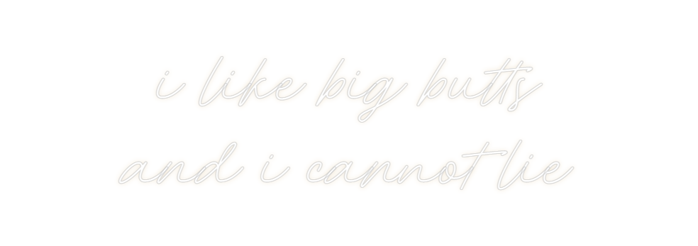 Text: i like big butts and i cannot lie Text Align: center Font: Rocket Colour: Warm WhiteSize: 160cm wide / 160cm X 46.76cm / 62.99in X 18.41inBackboard: Cut to Letter (free upgrade)Jacket: Coloured JacketMounting: Wall mounting screwsNeon Tube Thickness: Classic Tube (...
