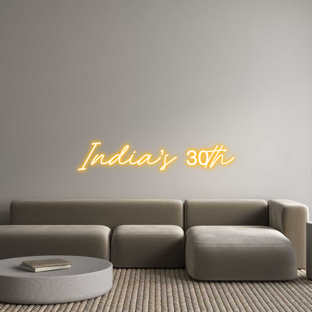 Text: India’s 30th Text Align: LeftFont: RocketColor: Light OrangeSize: 80cm wide / 80cm X 14.66cm / 31.5in X 5.77inMaterial: IndoorBackboard: Cut to ShapeBackboard Color: Clear Acrylic BackboardJacket: Coloured JacketMounting: HangingAdd a Heart or Star (Optional): None (Default)Neon Tube ...