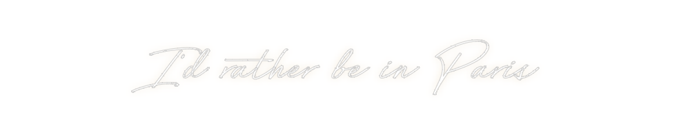 Text: I’d rather be in Paris Text Align: center Font: BayshoreColour: Warm WhiteSize: 120cm wide / 120cm X 16.68cm / 47.24in X 6.57inBackboard: Cut to ShapeBackboard Colour: Clear Acrylic BackboardJacket: Coloured JacketMounting: Wall mounting screwsAdd a Heart or Star (Optiona...