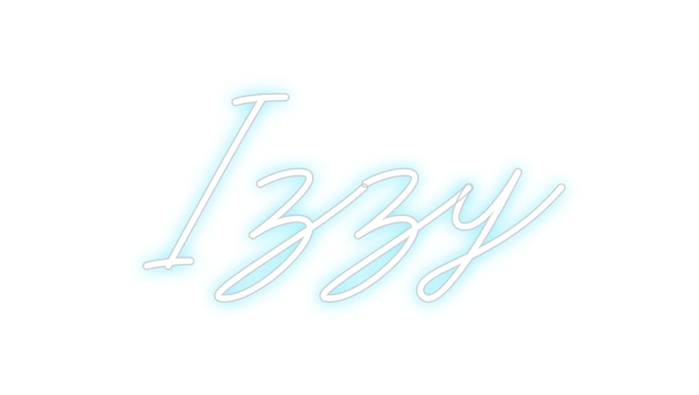 Text: Izzy Text Align: center Font: RocketColour: Ice BlueSize: 40cm wide / 40cm X 20.17cm / 15.75in X 7.94inBackboard: Cut to Letter (free upgrade)Jacket: Coloured JacketMounting: Wall mounting screwsAdd a Heart or Star (Optional): None (Default)Neon Tube Thickness: Classic Tu...
