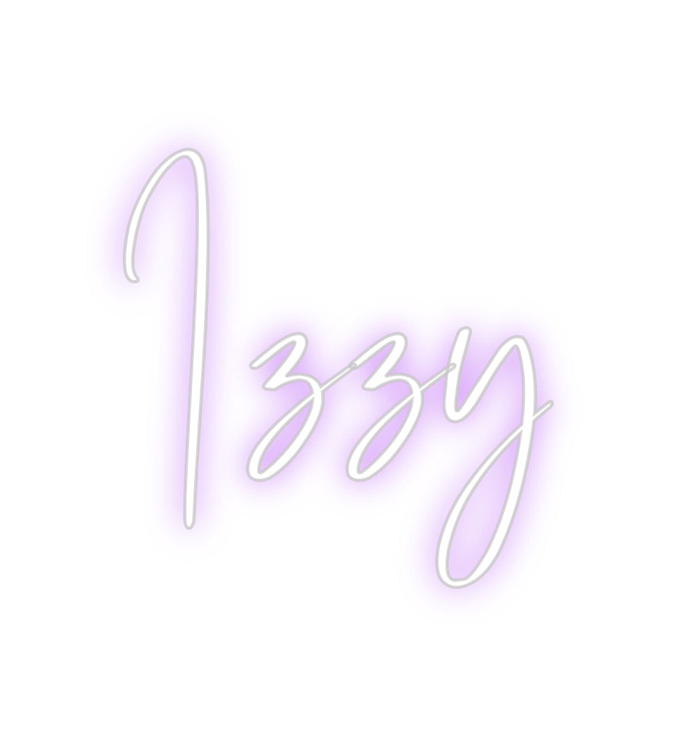 Text: Izzy Text Align: left Font: BayshoreColour: Colour Changing Neon sign/ RGB +85% price increase. Lights can be controlled through remoteSize: 60cm wide / 60cm X 21.83cm / 23.62in X 8.59inBackboard: Cut to Letter (free upgrade)Jacket: White JacketMounting: Wall mounting scr...