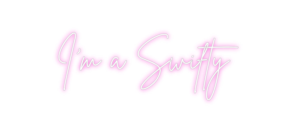 Text: I’m a Swifty Text Align: left Font: BrittanyColour: PinkSize: 60cm wide / 60cm X 24.11cm / 23.62in X 9.49inBackboard: Cut to Letter (free upgrade)Jacket: Coloured JacketMounting: Wall mounting screwsAdd a Heart or Star (Optional): HeartNeon Tube Thickness: Classic Tube (6...