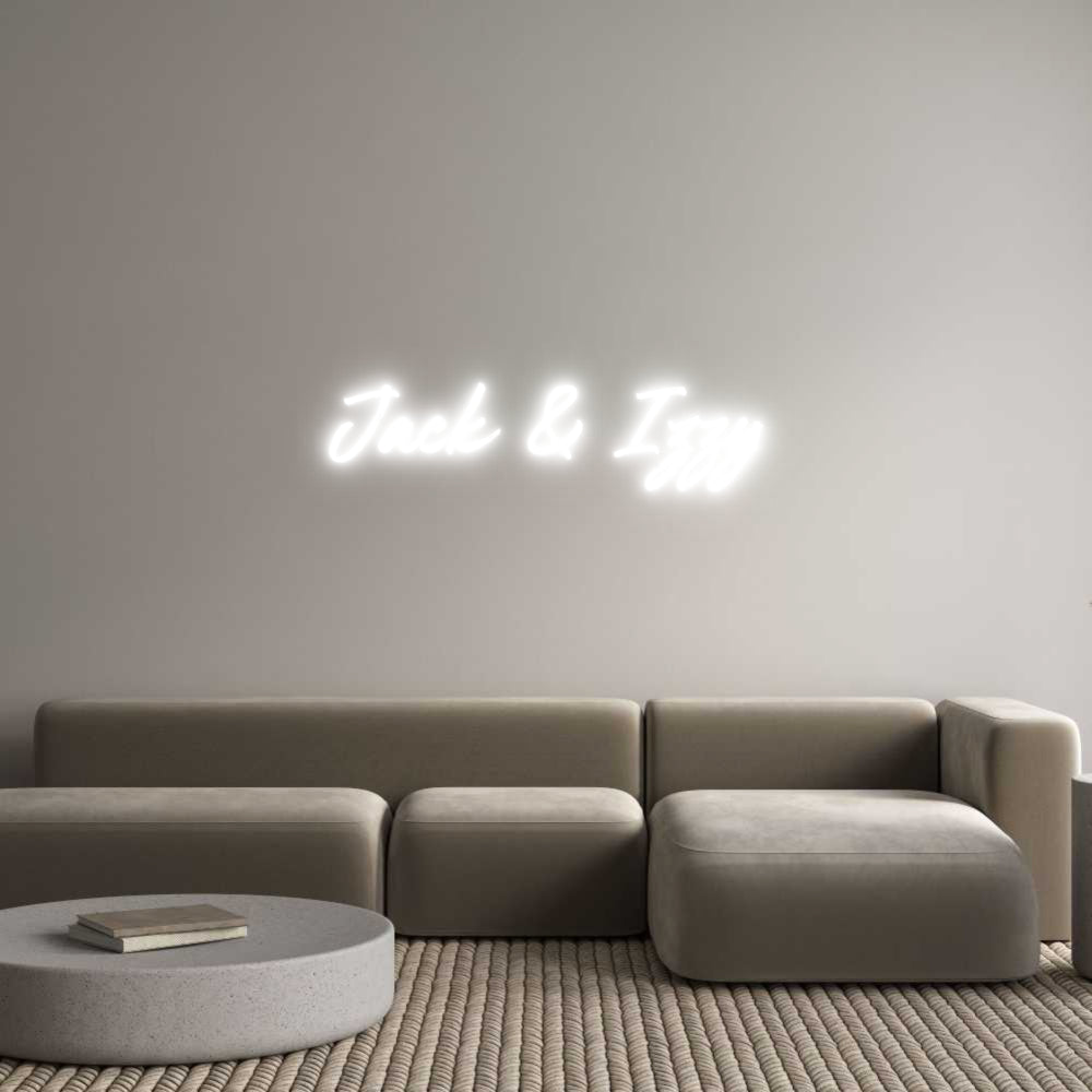 Text: Jack & Izzy Text Align: leftFont: WorldColour: Colour Changing Neon sign/ RGB +85% price increase. Lights can be controlled through remoteSize: 80cm wide / 80cm X 22.15cm / 31.5in X 8.72inBackboard: Whole Board (free upgrade)Backboard Colour: Clear Acrylic BackboardJacket: ...