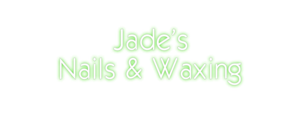 Text: Jade's Nails & Waxing Text Align: center Font: KabelColour: GreenSize: 80cm wide / 80cm X 25.18cm / 31.5in X 9.91inBackboard: Cut to Letter (free upgrade)Jacket: Coloured JacketMounting: HangingAdd a Heart or Star (Optional): None (Default)Neon Tube Thickness: Bold Tube (...