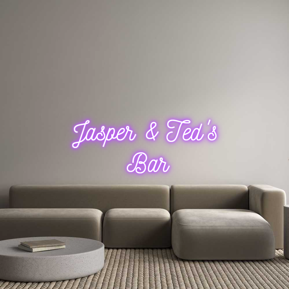 Text: Jasper & Ted's Bar Text Align: CenterFont: NickainleyColor: PurpleSize: 80cm wide / 80cm X 32.13cm / 31.5in X 12.65inMaterial: IndoorBackboard: Cut to Letter (free upgrade)Jacket: Coloured JacketMounting: Fast mount kitAdd a Heart or Star (Optional): None (Default)Neon Tube Thic...