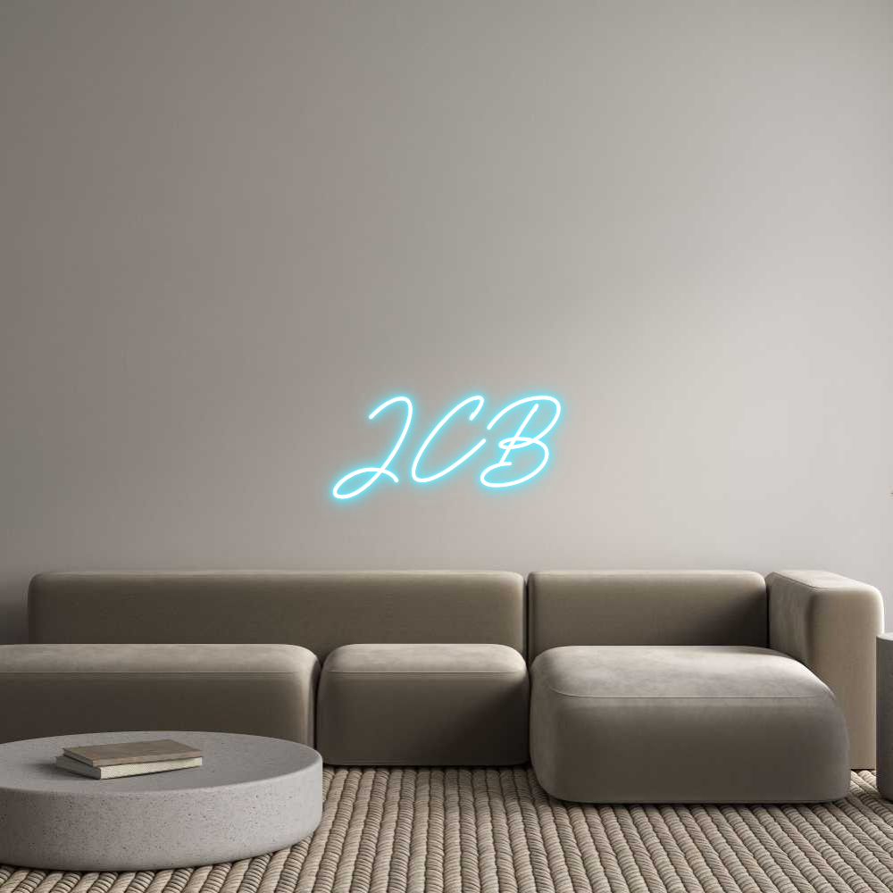 Original LogoText: JCB Text Align: LeftFont: RocketColor: Ice BlueSize: 40cm wide / 40cm X 17.94cm / 15.75in X 7.06inMaterial: Outdoor (+30%) Backboard: Cut to Letter (free upgrade)Jacket: Coloured JacketMounting: HangingAdd a Heart or Star (Optional): None (Default)Neon Tube Thickness: Bol...