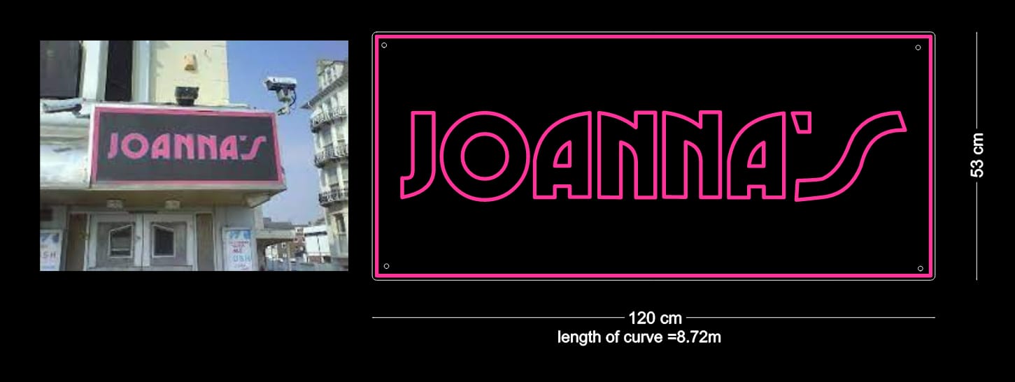 Text: Joanie Text Align: center Font: HestericaColour: PurpleSize: 40cm wide / 40cm X 24.03cm / 15.75in X 9.46inBackboard: Cut to Letter (free upgrade)Jacket: Coloured JacketMounting: Wall mounting screwsAdd a Heart or Star (Optional): None (Default)Neon Tube Thickness: Classic...