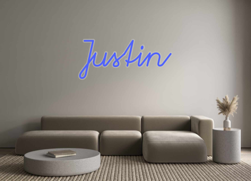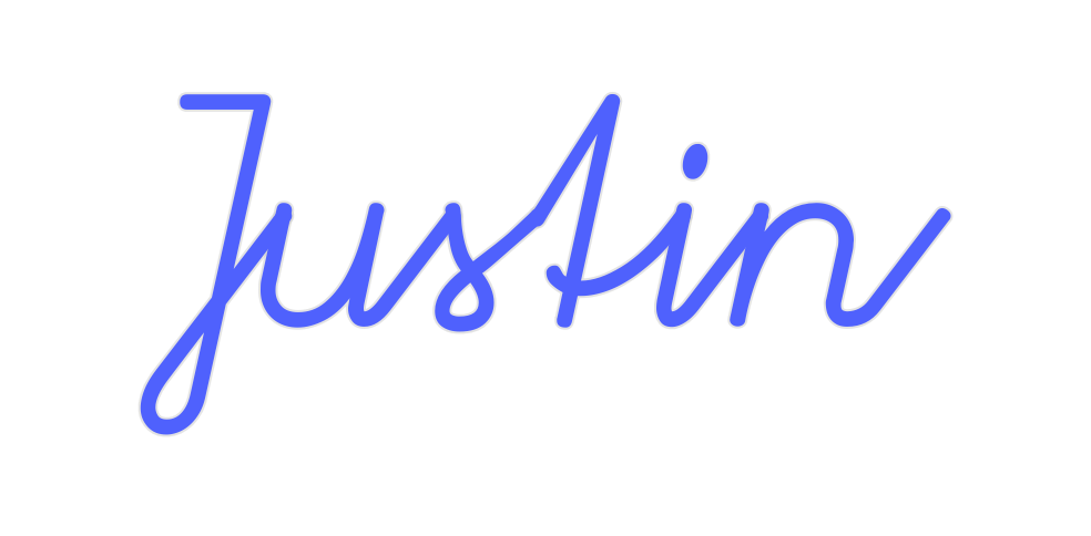 Text: Justin Text Align: left Font: Gruenewald Colour: BlueSize: 40cm wide / 40cm X 17.24cm / 15.75in X 6.79inBackboard: Cut to Letter (free upgrade)Jacket: Coloured JacketMounting: Wall mounting screwsNeon Tube Thickness: Bold Tube (8mm) (free upgrade)Remote Dimmer: NoPo...