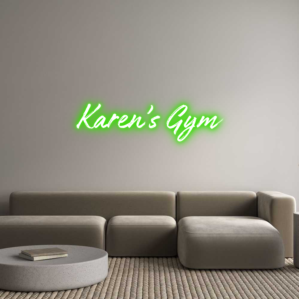Text: Karen’s Gym Text Align: LeftFont: WorldColor: GreenSize: 60cm wide / 60cm X 15.52cm / 23.62in X 6.11inMaterial: IndoorBackboard: Cut to ShapeBackboard Color: Clear Acrylic BackboardJacket: Coloured JacketMounting: Wall mounting screwsAdd a Heart or Star (Optional): None (Default)Neon...