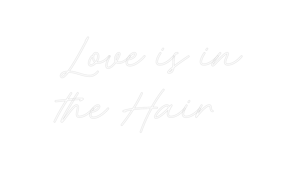Text: Love is in the hair Text Align: left Font: HestericaColour: Warm WhiteSize: 100cm wide / 100cm X 22.01cm / 39.37in X 8.66inBackboard: Cut to Letter (free upgrade)Jacket: Coloured JacketMounting: Wall mounting screwsAdd a Heart or Star (Optional): None (Default)Neon Tube T...
