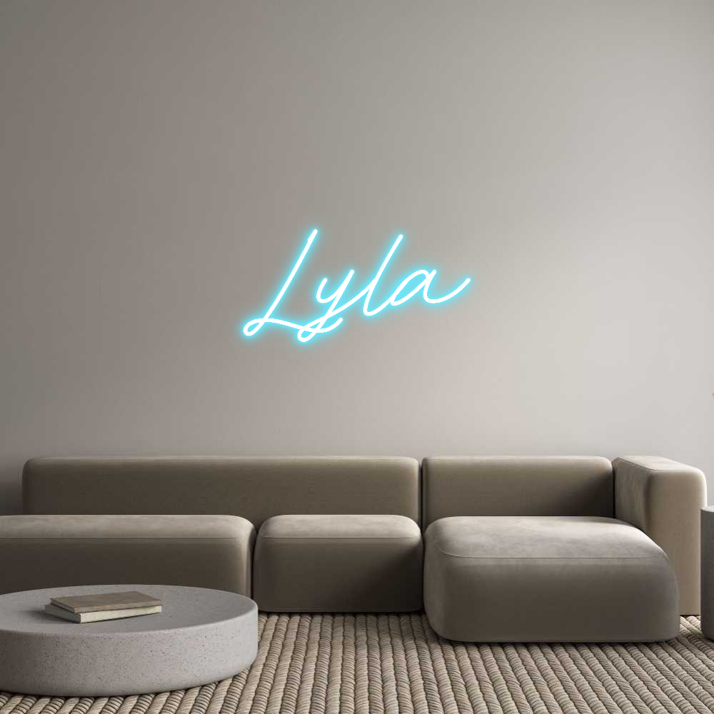 Text: Lyla Text Align: leftFont: RocketColour: Ice BlueSize: 40cm wide / 40cm X 20.58cm / 15.75in X 8.1inBackboard: Cut to ShapeBackboard Colour: Clear Acrylic BackboardJacket: Coloured JacketMounting: HangingAdd a Heart or Star (Optional): HeartNeon Tube Thickness: Bold Tube (8mm) (...