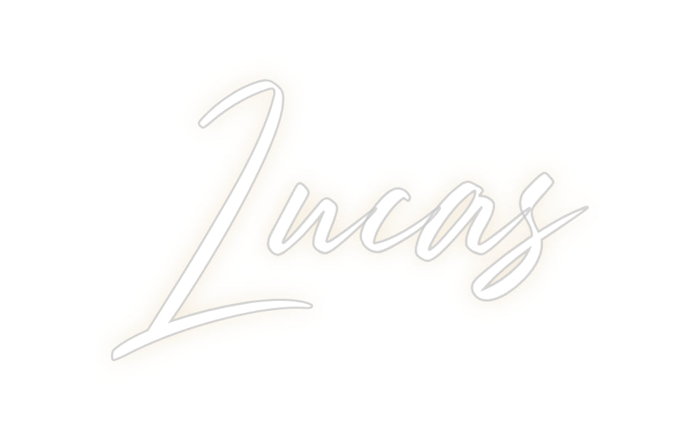 Text: Lucas Text Align: left Font: StrudeColour: Warm WhiteSize: 60cm wide / 60cm X 34.2cm / 23.62in X 13.46inBackboard: Cut to Letter (free upgrade)Jacket: Coloured JacketMounting: Wall mounting screwsAdd a Heart or Star (Optional): None (Default)Neon Tube Thickness: Classic Tube (6...
