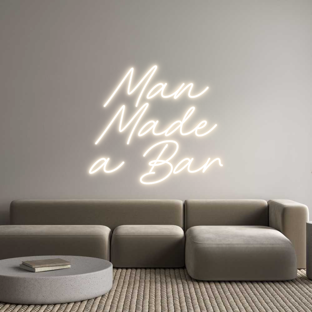 Text: Man Made a Bar Text Align: CenterFont: RocketColor: Warm WhiteSize: 40cm wide / 40cm X 51.55cm / 15.75in X 20.29inBackboard: Cut to ShapeBackboard Color: Clear Acrylic BackboardJacket: Coloured JacketMounting: HangingAdd a Heart or Star (Optional): None (Default)Neon Tube Thi...
