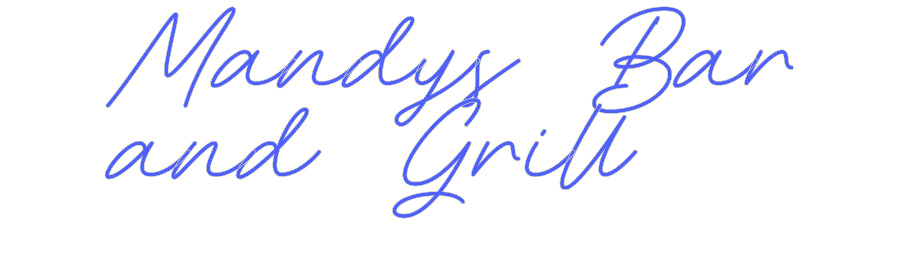 Text: Mandys Bar and Grill Text Align: leftFont: RocketColour: BlueSize: 60cm wide / 60cm X 24.72cm / 23.62in X 9.73inBackboard: Cut to ShapeBackboard Colour: Clear Acrylic BackboardJacket: Coloured JacketMounting: Wall mounting screwsAdd a Heart or Star (Optional): None (Default)Ne...