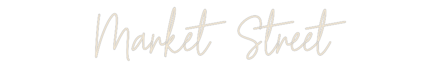 Text: Market Street Text Align: leftFont: HestericaColour: Warm WhiteSize: 100cm wide / 100cm X 24.54cm / 39.37in X 9.66inBackboard: Cut to Letter (free upgrade)Jacket: Coloured JacketMounting: Wall mounting screwsAdd a Heart or Star (Optional): None (Default)Neon Tube Thickness: Cla...