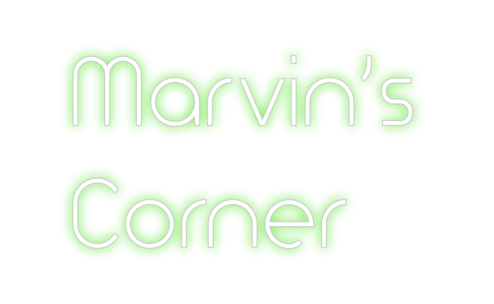 Text: Marvin’s Corner Text Align: left Font: TimeColour: GreenSize: 80cm wide / 80cm X 44.42cm / 31.5in X 17.49inBackboard: Cut to ShapeJacket: White JacketMounting: Wall mounting screwsAdd a Heart or Star (Optional): None (Default)Neon Tube Thickness: Classic Tube (6mm)Remote ...