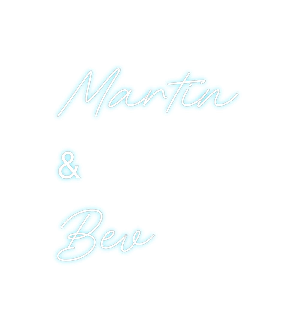 Text: Martin & Bev Text Align: left Font: RocketColour: Ice BlueSize: 80cm wide / 80cm X 84.54cm / 31.5in X 33.28inBackboard: Cut to ShapeBackboard Colour: Clear Acrylic BackboardJacket: Coloured JacketMounting: Wall mounting screwsAdd a Heart or Star (Optional): HeartNeon Tu...