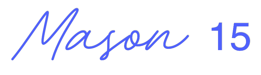 Text: Mason 15 Text Align: LeftFont: RocketColor: BlueSize: 60cm wide / 60cm X 13.09cm / 23.62in X 5.16inMaterial: IndoorBackboard: Cut to ShapeBackboard Color: Clear Acrylic BackboardJacket: Coloured JacketMounting: Wall mounting screwsAdd a Heart or Star (Optional): None (Default)Neon Tub...