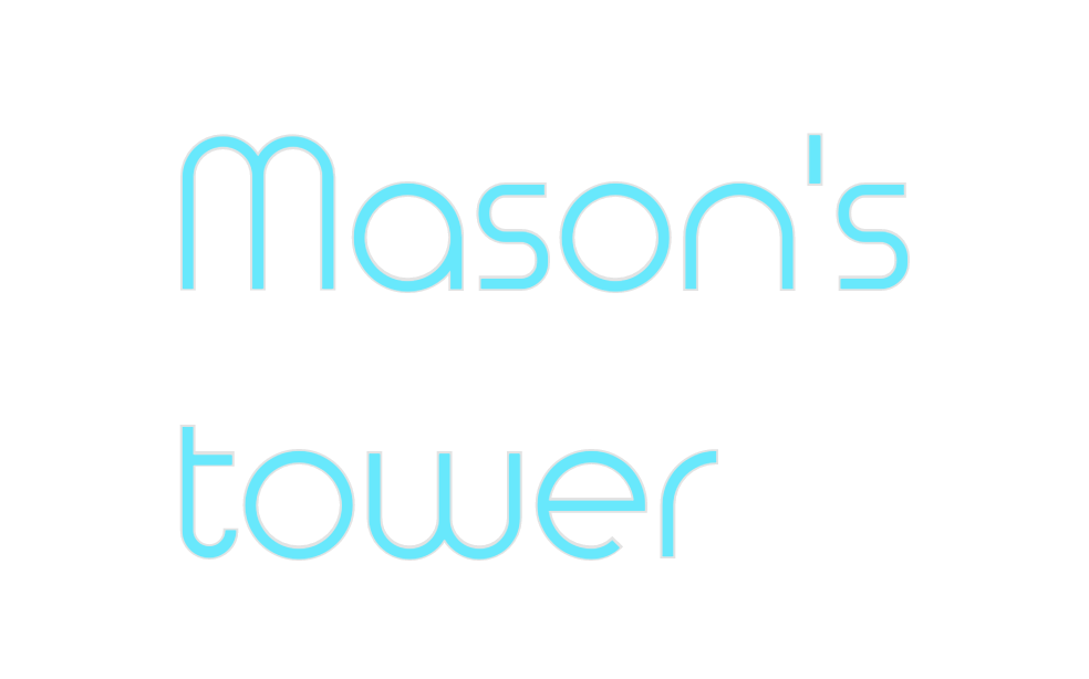 Text: Mason's tower Text Align: left Font: Time Colour: Ice BlueSize: 40cm wide / 40cm X 22.54cm / 15.75in X 8.87inBackboard: Cut to ShapeBackboard Colour: Clear Acrylic BackboardJacket: White JacketMounting: Wall mounting screwsNeon Tube Thickness: Classic Tube (6mm)Remo...
