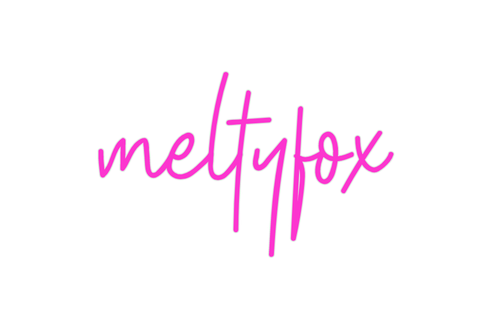 Text: meltyfox Text Align: left Font: Shutter Colour: PinkSize: 60cm wide / 60cm X 34.84cm / 23.62in X 13.72inBackboard: Cut to ShapeBackboard Colour: Clear Acrylic BackboardJacket: Coloured JacketMounting: Wall mounting screwsNeon Tube Thickness: Bold Tube (8mm) (free up...