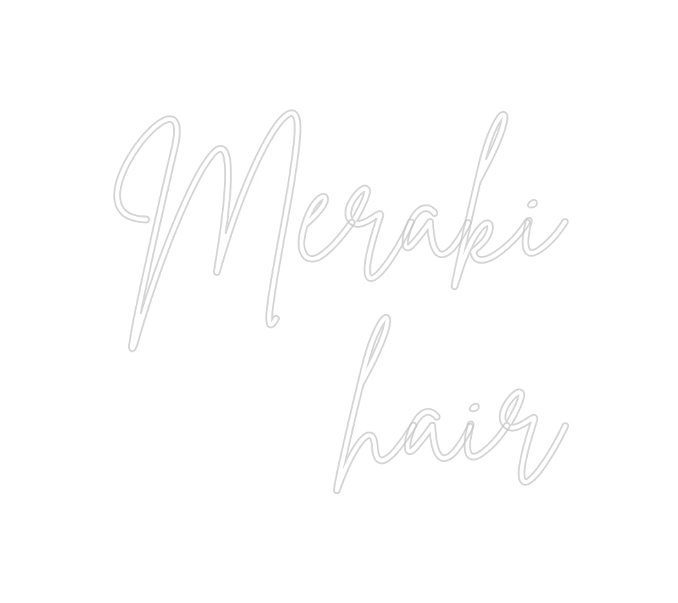 Text: Meraki hair Text Align: right Font: BrittanyColour: WhiteSize: 60cm wide / 60cm X 49.78cm / 23.62in X 19.6inBackboard: Cut to Letter (free upgrade)Jacket: White JacketMounting: Wall mounting screwsAdd a Heart or Star (Optional): None (Default)Neon Tube Thickn...