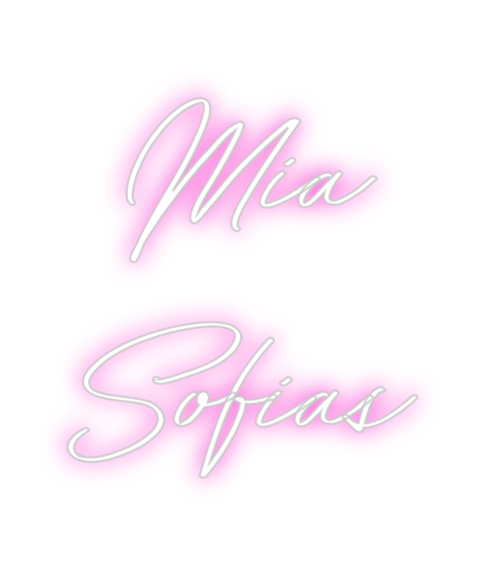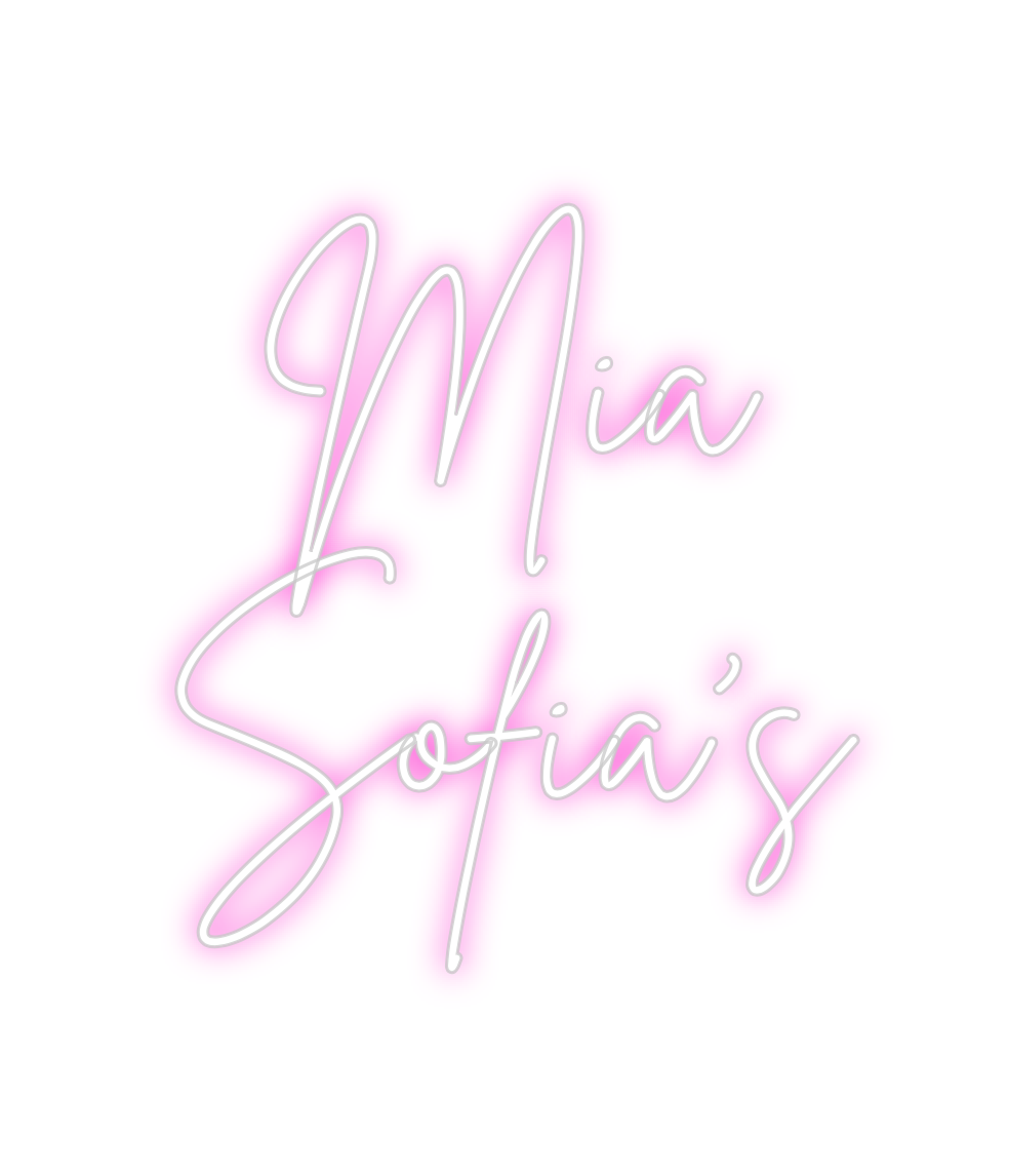 Text: Mia Sofia's Text Align: center Font: Brittany Colour: PinkSize: 80cm wide / 80cm X 88.37cm / 31.5in X 34.79inBackboard: Cut to Letter (free upgrade)Jacket: White JacketMounting: Wall mounting screwsNeon Tube Thickness: Bold Tube (8mm) (free upgrade)Remote Dimmer: No...