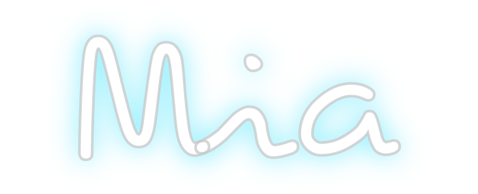 Text: Mia Text Align: left Font: Love IslandColour: Ice BlueSize: 20cm wide / 20cm X 6.92cm / 7.87in X 2.72inBackboard: Cut to ShapeBackboard Colour: Clear Acrylic BackboardJacket: White JacketMounting: Wall mounting screwsAdd a Heart or Star (Optional): None (Default)Neon Tube...