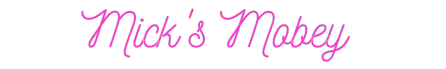 Text: Mick's Mobey Text Align: leftFont: NickainleyColour: PinkSize: 80cm wide / 80cm X 16.71cm / 31.5in X 6.58inBackboard: Cut to ShapeBackboard Colour: Clear Acrylic BackboardJacket: Coloured JacketMounting: Wall mounting screwsAdd a Heart or Star (Optional): None (Default)Neon Tu...