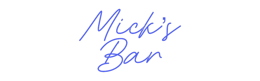 Text: Mick’s Bar Text Align: LeftFont: RocketColor: BlueSize: 60cm wide / 60cm X 11.82cm / 23.62in X 4.65inMaterial: IndoorBackboard: Cut to ShapeBackboard Color: Clear Acrylic BackboardJacket: Coloured JacketMounting: Wall mounting screwsAdd a Heart or Star (Optional): None (Default)Neon T...