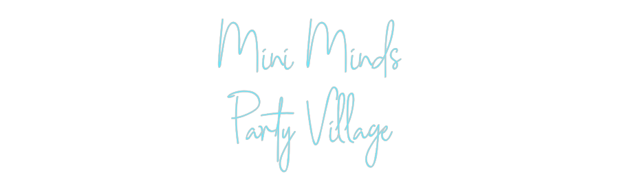 Text: Mini Minds Party Village Text Align: CenterFont: SouthamptonColor: Ice BlueSize: 140cm wide / 140cm X 120.57cm / 55.12in X 47.47inMaterial: IndoorBackboard: Cut to Letter (free upgrade)Jacket: Coloured JacketMounting: Wall mounting screwsAdd a Heart or Star (Optional): None (D...
