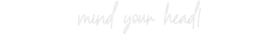 Text: mind your head! Text Align: leftFont: HestericaColour: Warm WhiteSize: 80cm wide / 80cm X 23.98cm / 31.5in X 9.44inBackboard: Cut to Letter (free upgrade)Jacket: White JacketMounting: Wall mounting screwsAdd a Heart or Star (Optional): None (Default)Neon Tube Thickness: Classic...