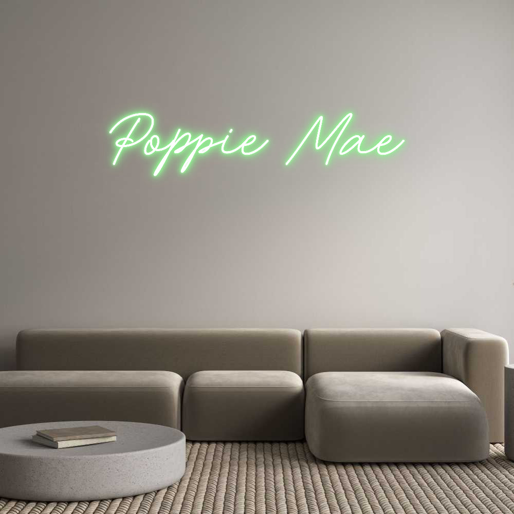 Text: Poppie Mae Text Align: left Font: RocketColour: Light GreenSize: 60cm wide / 60cm X 12.97cm / 23.62in X 5.1inBackboard: Cut to Letter (free upgrade)Jacket: Coloured JacketMounting: Wall mounting screwsAdd a Heart or Star (Optional): StarNeon Tube Thickness: Bold Tube (8mm...