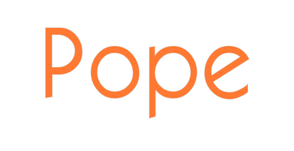 Text: Pope Text Align: center Font: Kabel Colour: OrangeSize: 20cm wide / 20cm X 9.09cm / 7.87in X 3.58inBackboard: Cut to Letter (free upgrade)Jacket: Coloured JacketMounting: HangingNeon Tube Thickness: Bold Tube (8mm) (free upgrade)Remote Dimmer: YesPower Mode: Battery...