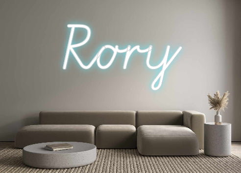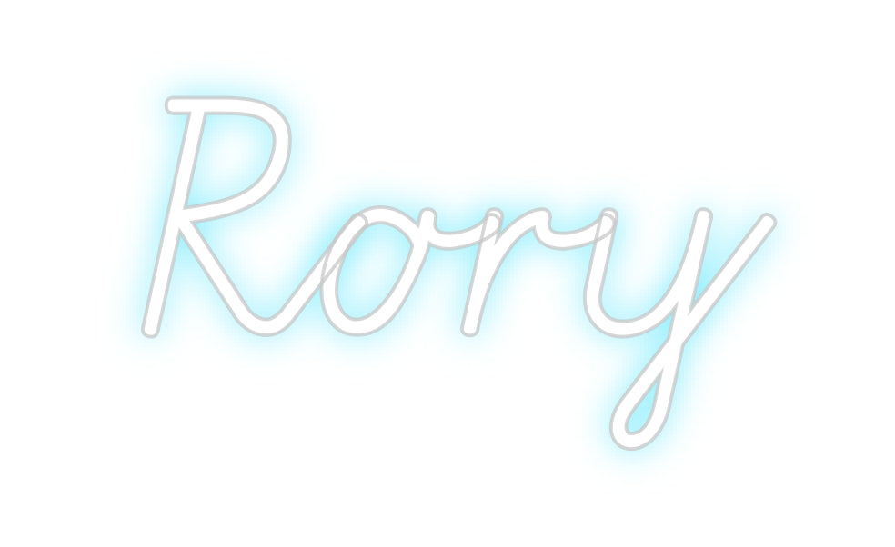 Text: Rory Text Align: left Font: GruenewaldColour: Ice BlueSize: 40cm wide / 40cm X 22.04cm / 15.75in X 8.68inBackboard: Whole Board (free upgrade)Backboard Colour: Clear Acrylic BackboardJacket: White JacketMounting: HangingAdd a Heart or Star (Optional): None (Default)Neon Tube Th...