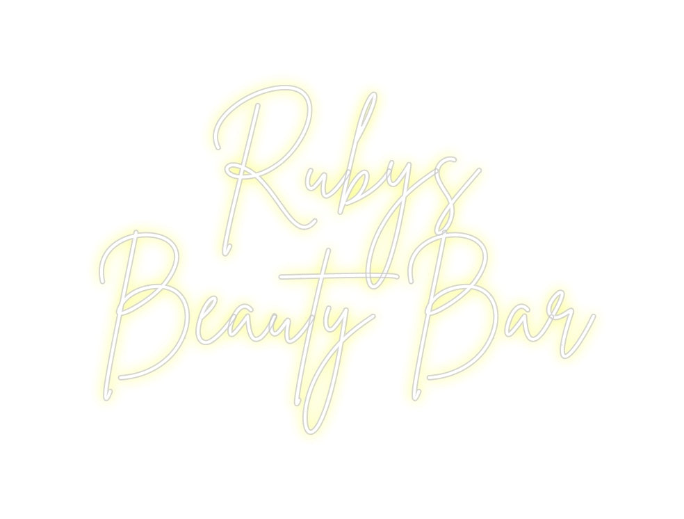 Text: Rubys Beauty Bar Text Align: center Font: BrittanyColour: YellowSize: 100cm wide / 100cm X 69.72cm / 39.37in X 27.45inBackboard: Cut to Letter (free upgrade)Jacket: Coloured JacketMounting: Wall mounting screwsAdd a Heart or Star (Optional): None (Default)Neon Tube Thickness...