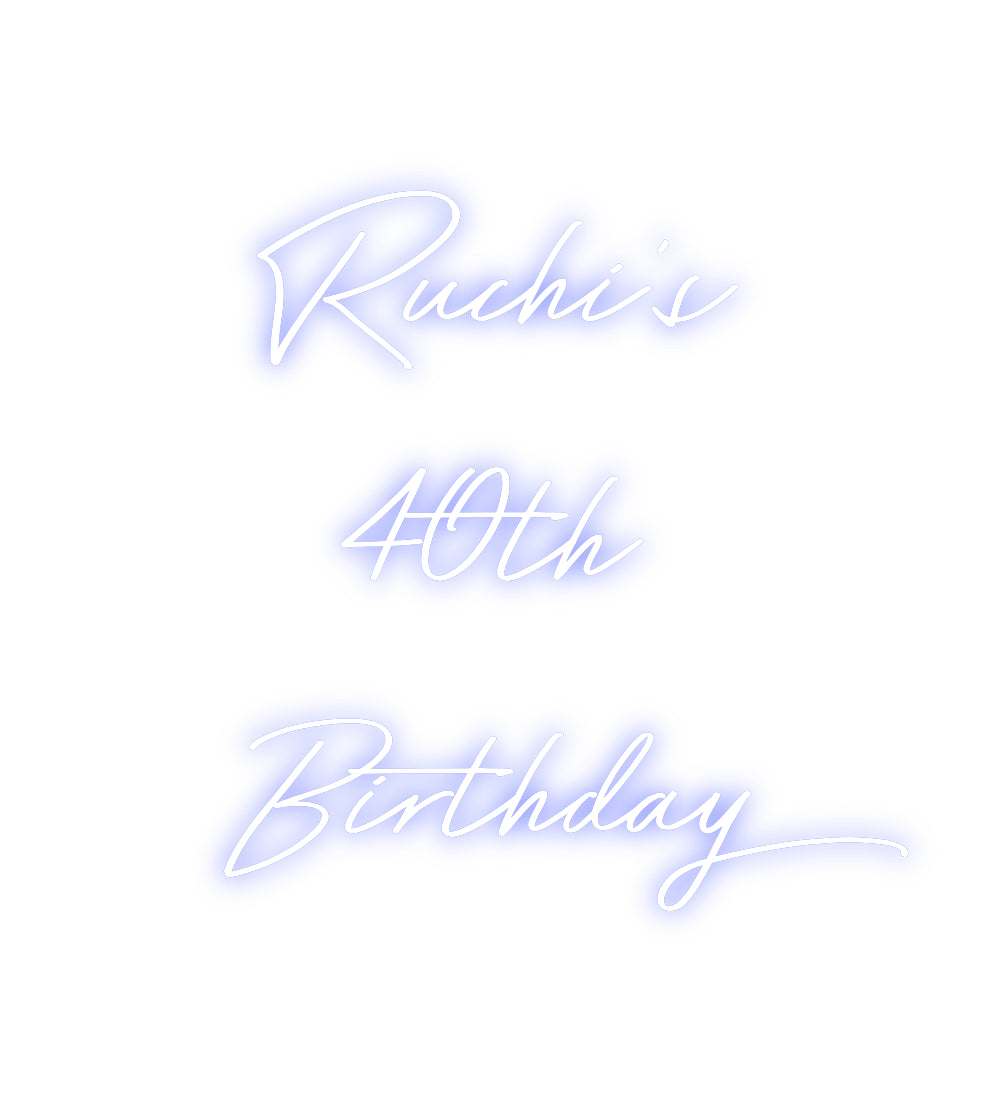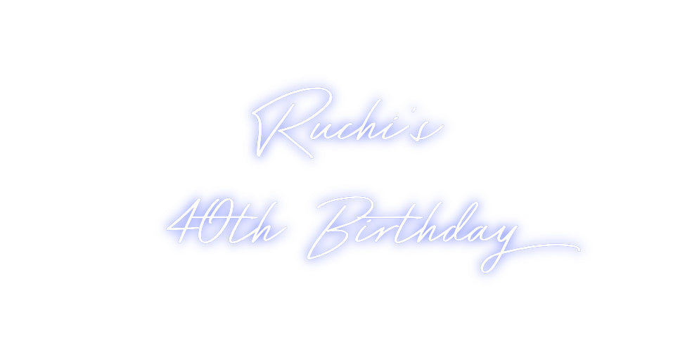 Text: Ruchi’s 40th Birthday Text Align: center Font: BayshoreColour: BlueSize: 80cm wide / 80cm X 84.74cm / 31.5in X 33.36inBackboard: Cut to Letter (free upgrade)Jacket: White JacketMounting: Wall mounting screwsAdd a Heart or Star (Optional): None (Default)Neon Tube Thickness: B...